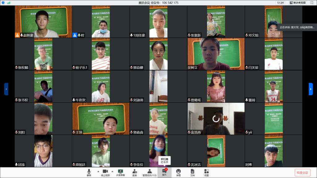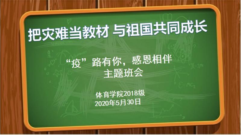 为了进一步激发永利官网学生的责任担当,引导广大学生把灾难当教材、把困难当磨砺,做到在灾难面前与国家共患难、与人民共进步,共同完成这场生命教育、信念教育、科学教育与道德教育,大力加强爱国主义教育,努力把疫情危机化为教育契机,永利官网2018级于30日晚7点开展线上“把灾难当教材 与祖国共同成长”主题班会,2018级辅导员程俊辉和全体同学一同参加此次主题班会。