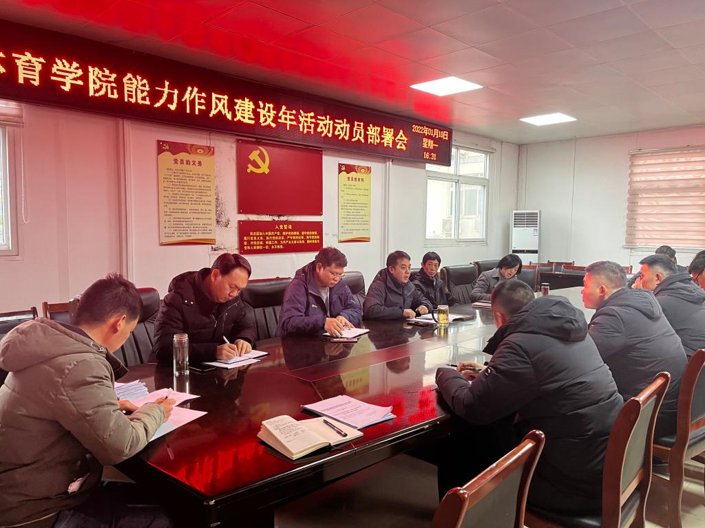 1月10日,yl23455永利官网召开“能力作风建设年”活动动员部署会,对yl23455永利官网开展“能力作风建设年”相关工作进行安排部署,学院领导班子全体成员和科级及以上干部参加会议,会议由党委书记张晓峰主持。