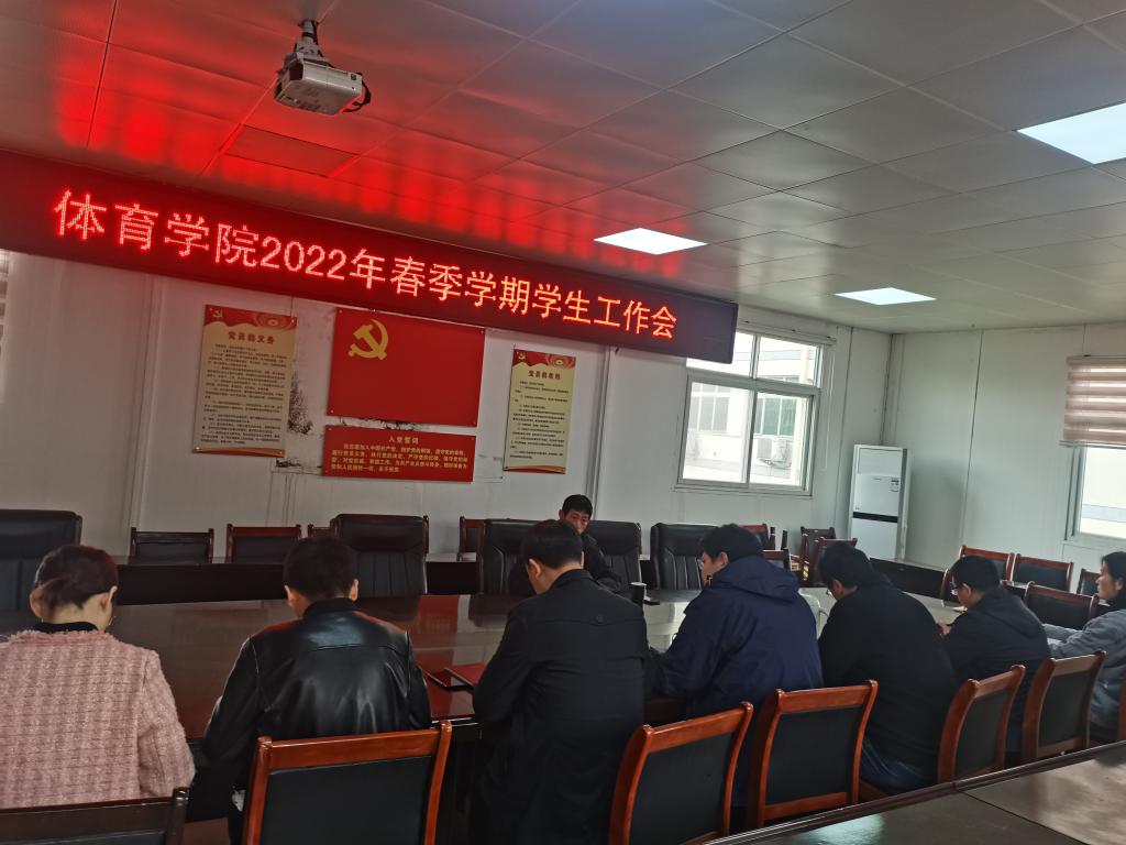 会上,柴书记首先传达了学校2022年春季学期学生工作会议会议精神,并从疫情防控、学生工作品牌建设、辅导员队伍建设、征兵工作、大学生心理健康、、第二课堂学习等方面部署近期工作,并指出,今年yl23455永利官网将继续开展并完善yl23455永利官网“文体计划”工作品牌,开展以“日日跑、周周练、月月读、基本功大赛”为基础的文体计划班培训,培养德智体美劳全面发展的体育生。