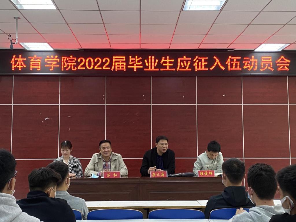 3月11日下午yl23455永利官网在体育馆多媒体教室召开“yl23455永利官网2022届毕业生应征入伍动员大会”。校武装部副部长苏和,yl23455永利官网党委副书记柴九昌,yl23455永利官网全体辅导员、毕业生参会。会议由唐娟主持。